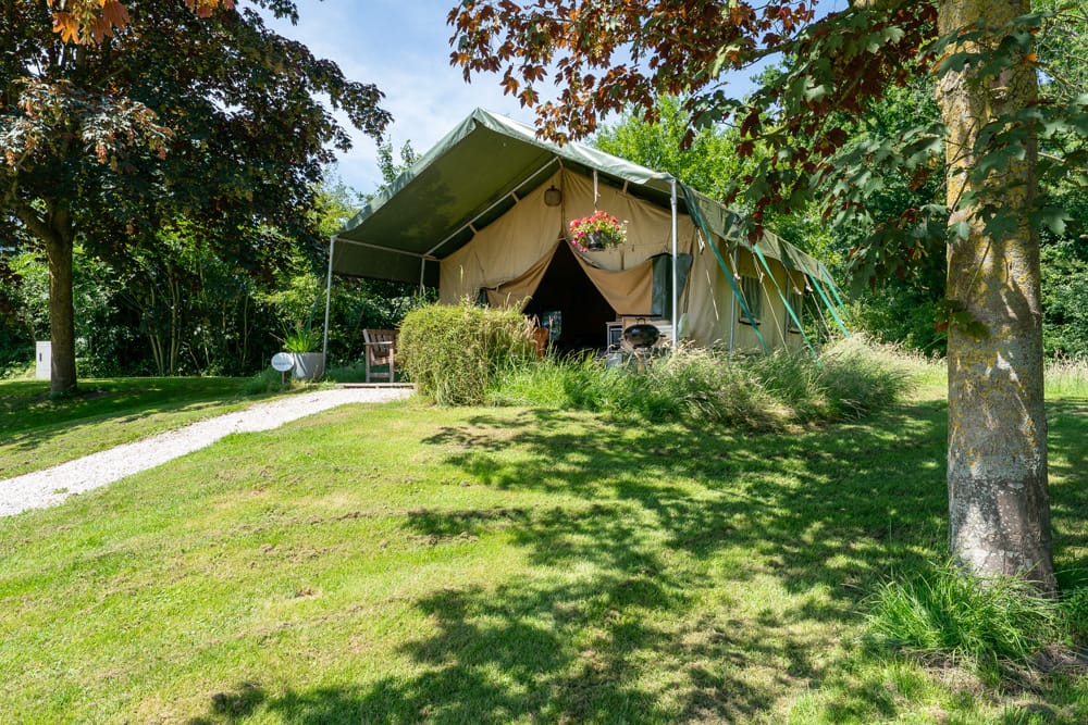 Op ons ruime (speel)veld, omringd door bomen, staan vier comfortabele safaritenten. Ze liggen op voldoende afstand van elkaar, zodat je volop van rust en privacy kunt genieten. Elke tent biedt plaats aan vier personen en beschikt over een eigen terras, badkamer en keuken. Vanuit je verblijf heb je een prachtig uitzicht op de grote vijver.